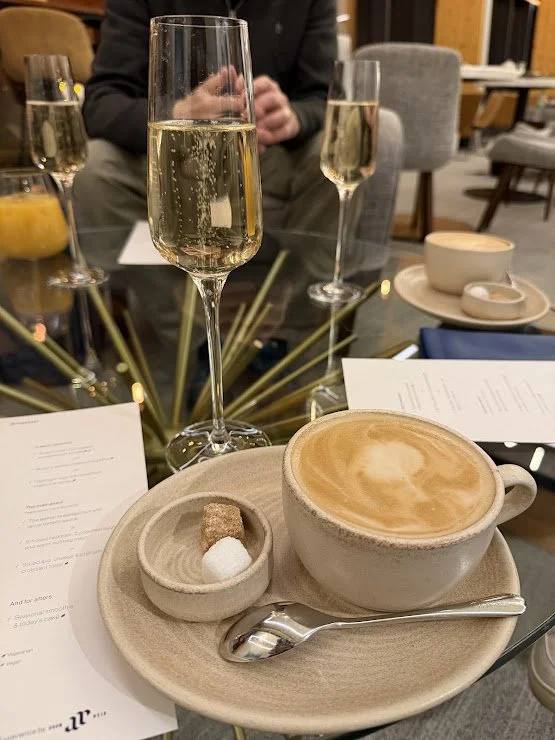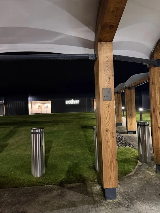 Instead of heading into the main terminal with everyone else, we made our way to Aether, tucked away from the usual airport chaos. From the moment we walked through the door, the atmosphere felt different: calm, quiet and very un‑airportlike.